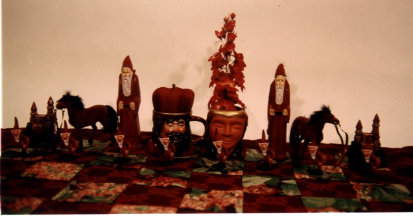 Chess Sets 07 Sunday Jul 2013 Original size at 835 × 436 ≈ Comments Off on Christmas Chess Set Found Object Chess set on quilted tapestry board
