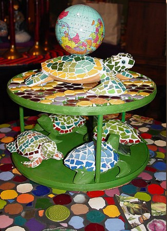 Creatures 13 Saturday Apr 2013 Original size at 325 × 450 ≈ Comments Off on Sea Turtle Carousel View 1 “Sea Turtle Carousel” View 1 40 x 22 x 22″ Mixed media, picassiette and traditional mosaic
