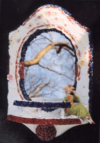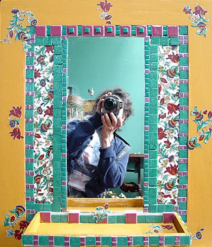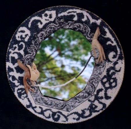 Mirrors Grapevine Mirror Mirror of Time “You’ve Got Mail” Mirror “Bandanna Mirror” “Yellow Mirror 1” “Yellow Mirror 2” “Ornate Mirror” View 1 “Ornate Mirror” View 2 seed bead mirror frame